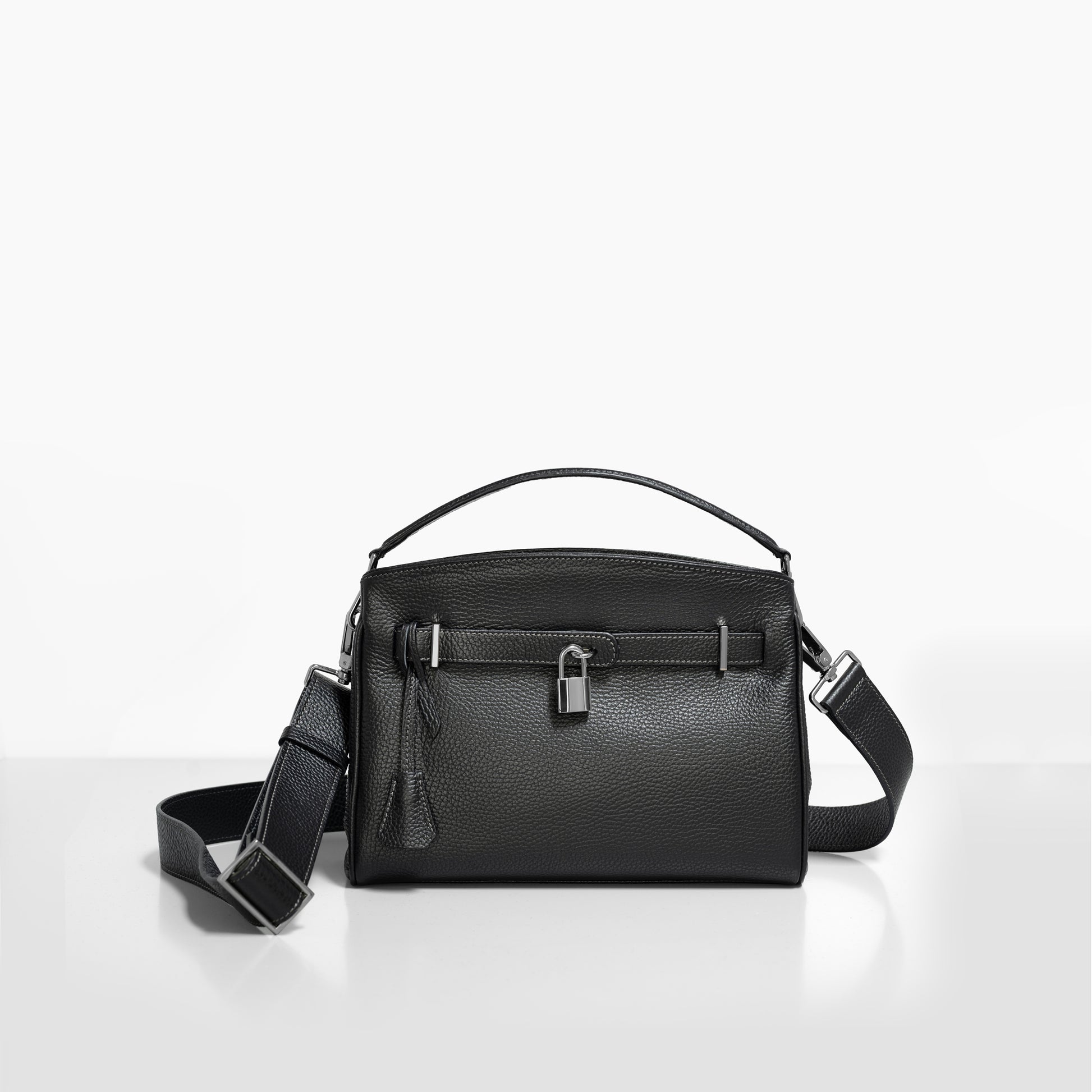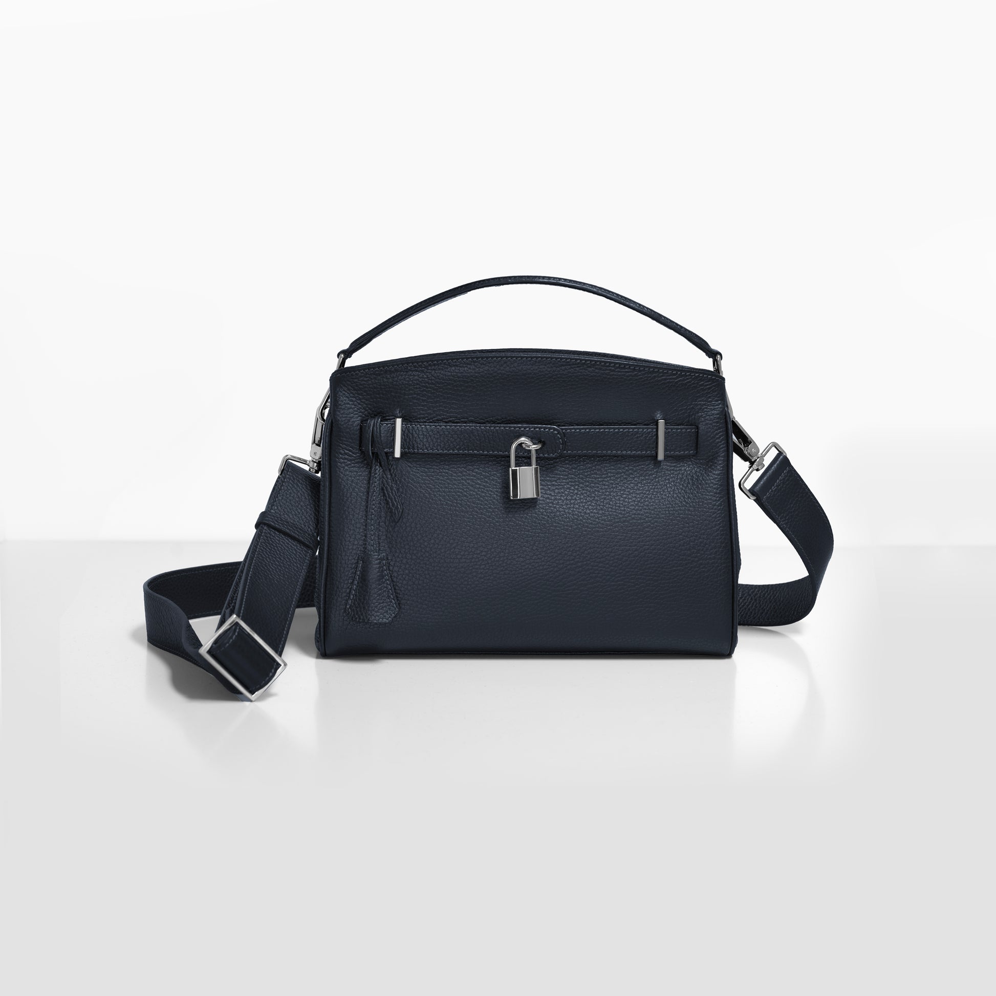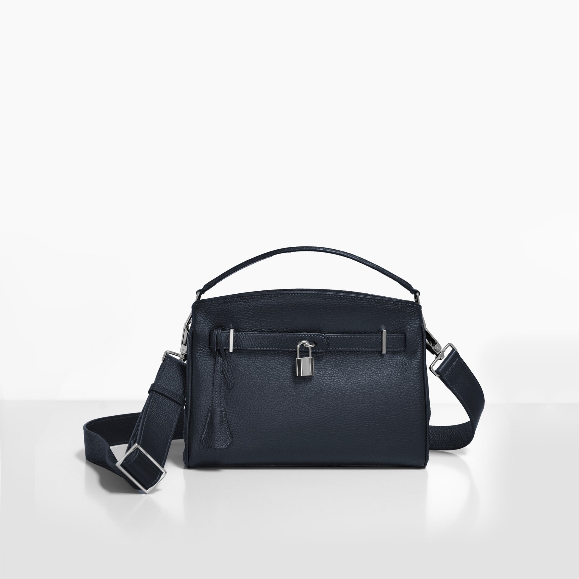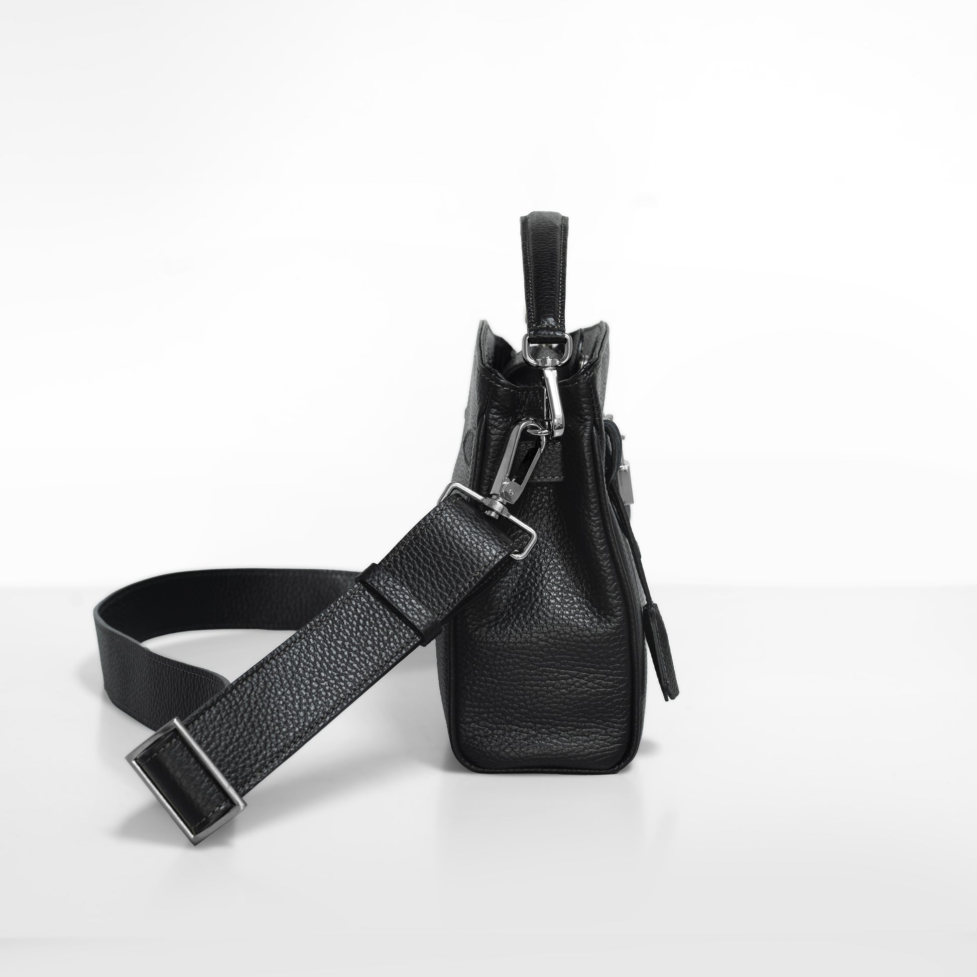 ナヴォナの特徴的なベルトデザインはそのままに、ミニマルなサイズ感を実現。コンパクトでありながらも、500mlのペットボトルや大きめの長財布を収納可能なサイズです。取り外し可能なハンドル、ショルダーベルトで様々なシチュエーションで活躍します。