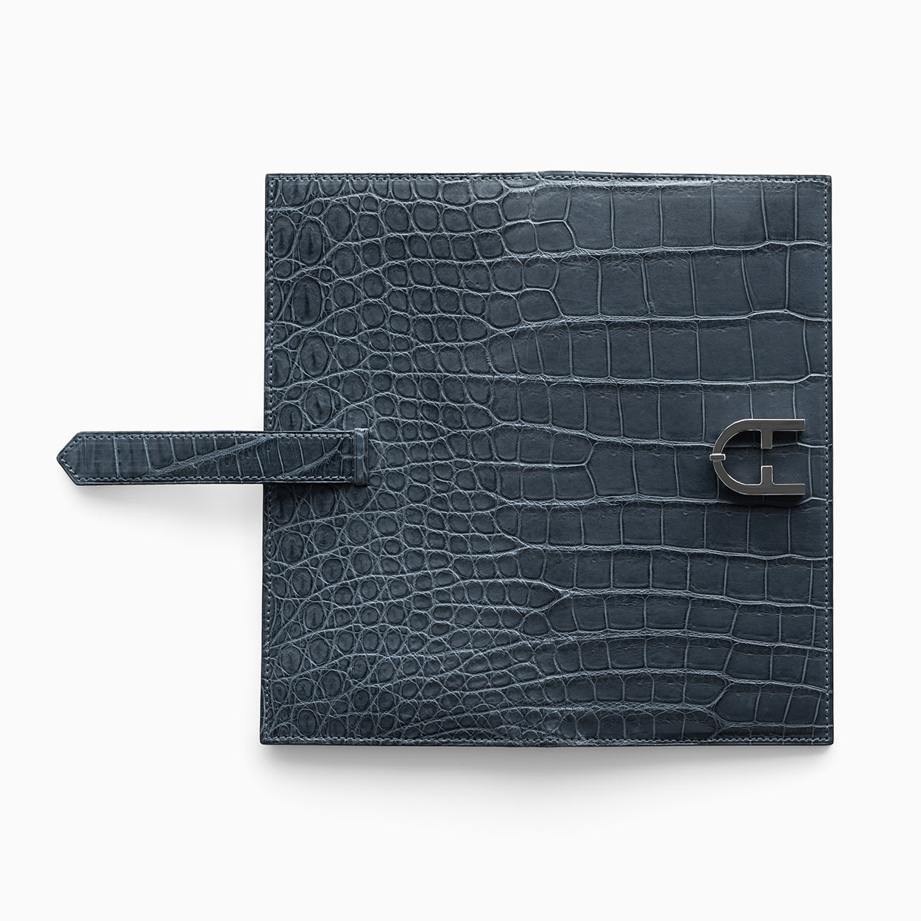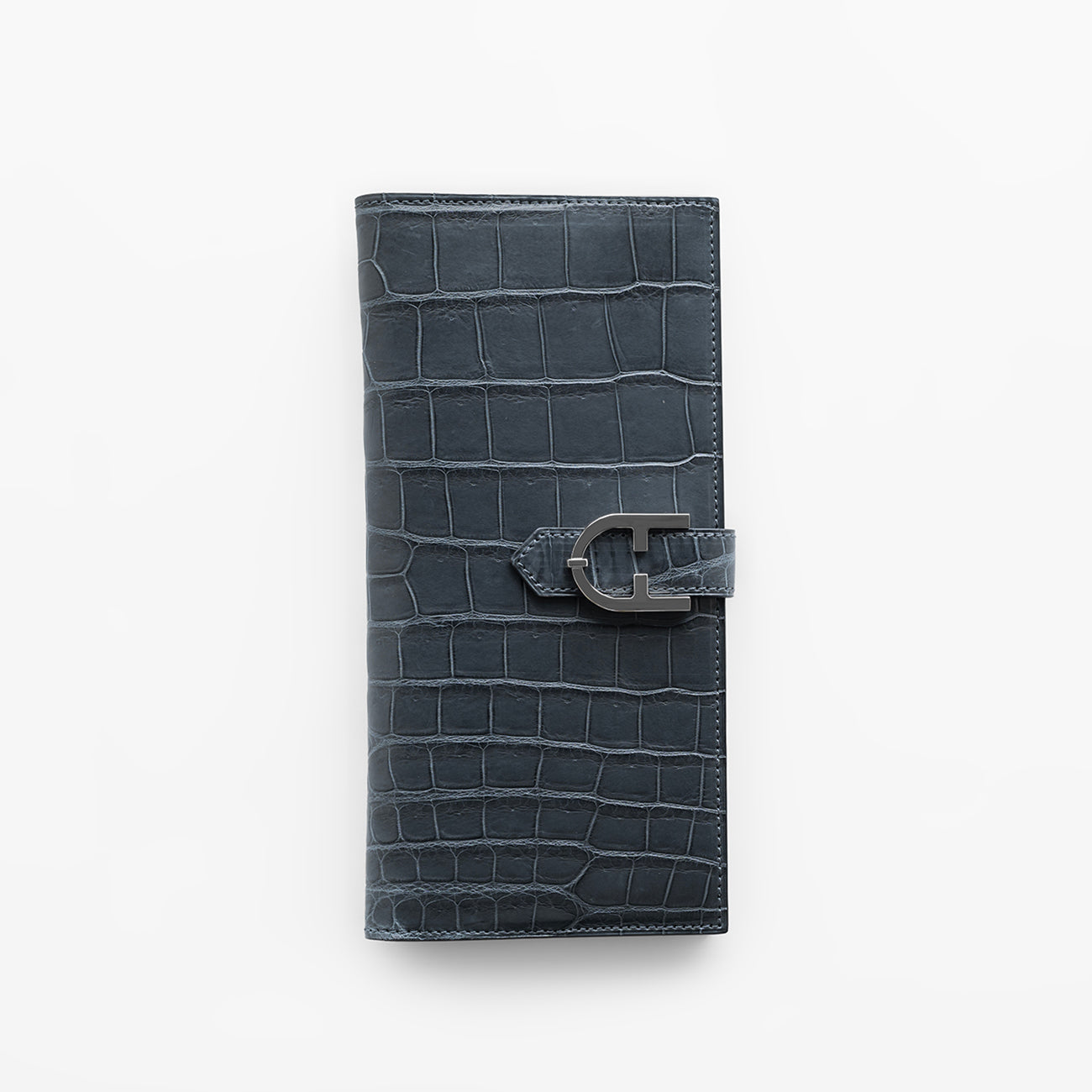 GRIGIO ZAFFIRO - Sapphire Gray. It is made of the highest grade Small Crocodile called Polosus which is supposed to be more beautiful as it is used.