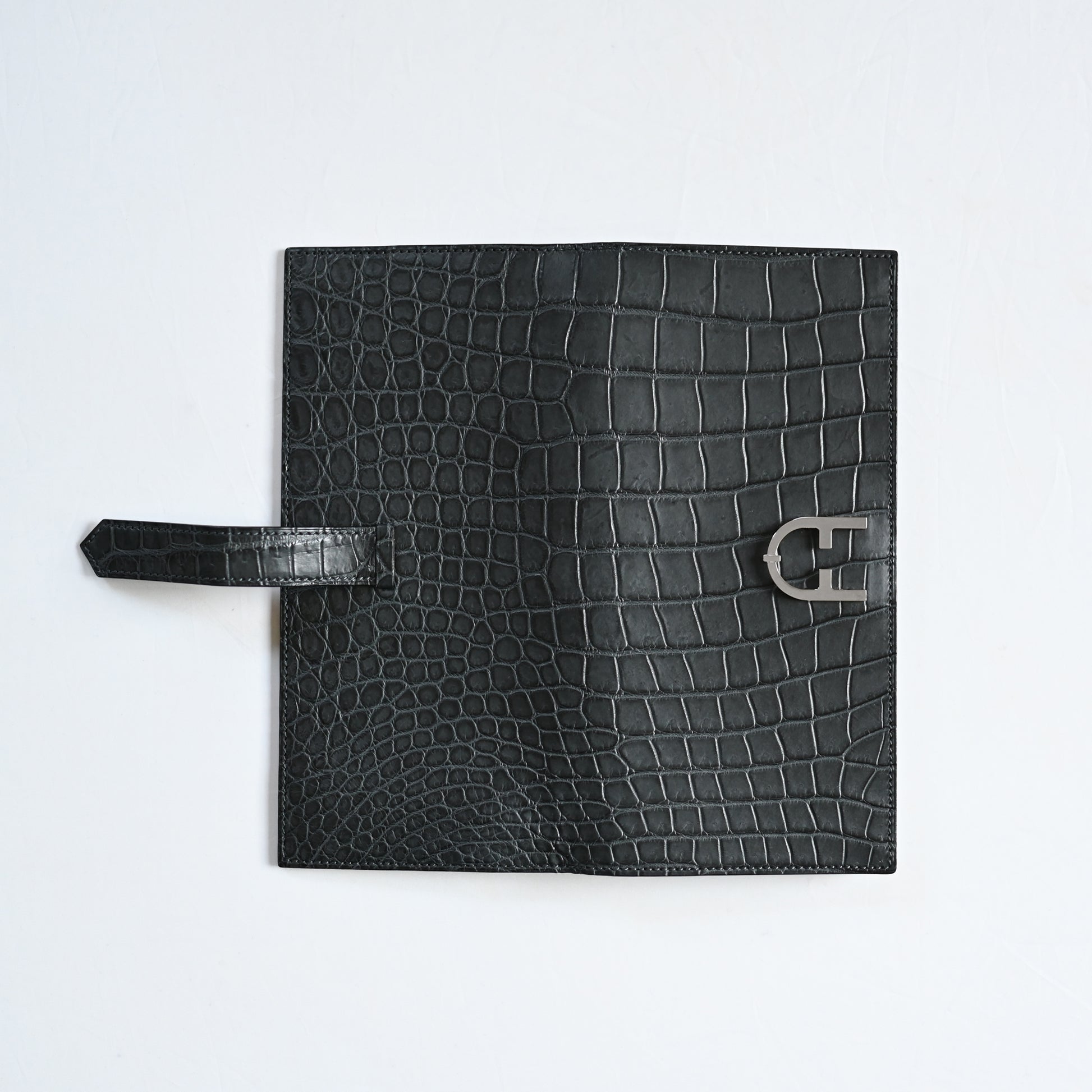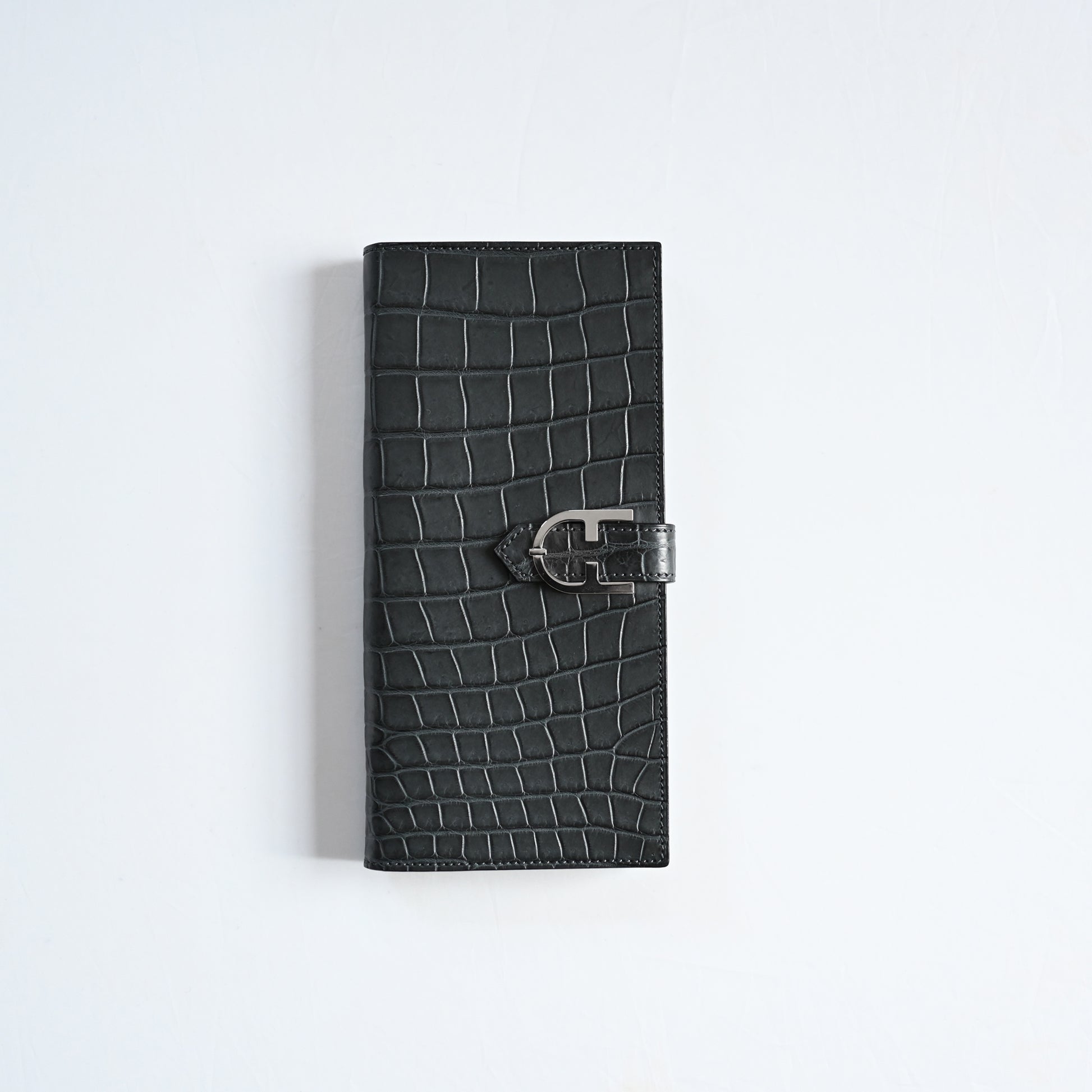 GRIGIO ZAFFIRO グリジオ・ザフィーロ(サファイア・グレー)。貴重なクロコダイルの中でも最もグレードの高いポロサスを使用。使うほどに美しく風合いの増す自然なマット仕上げです。