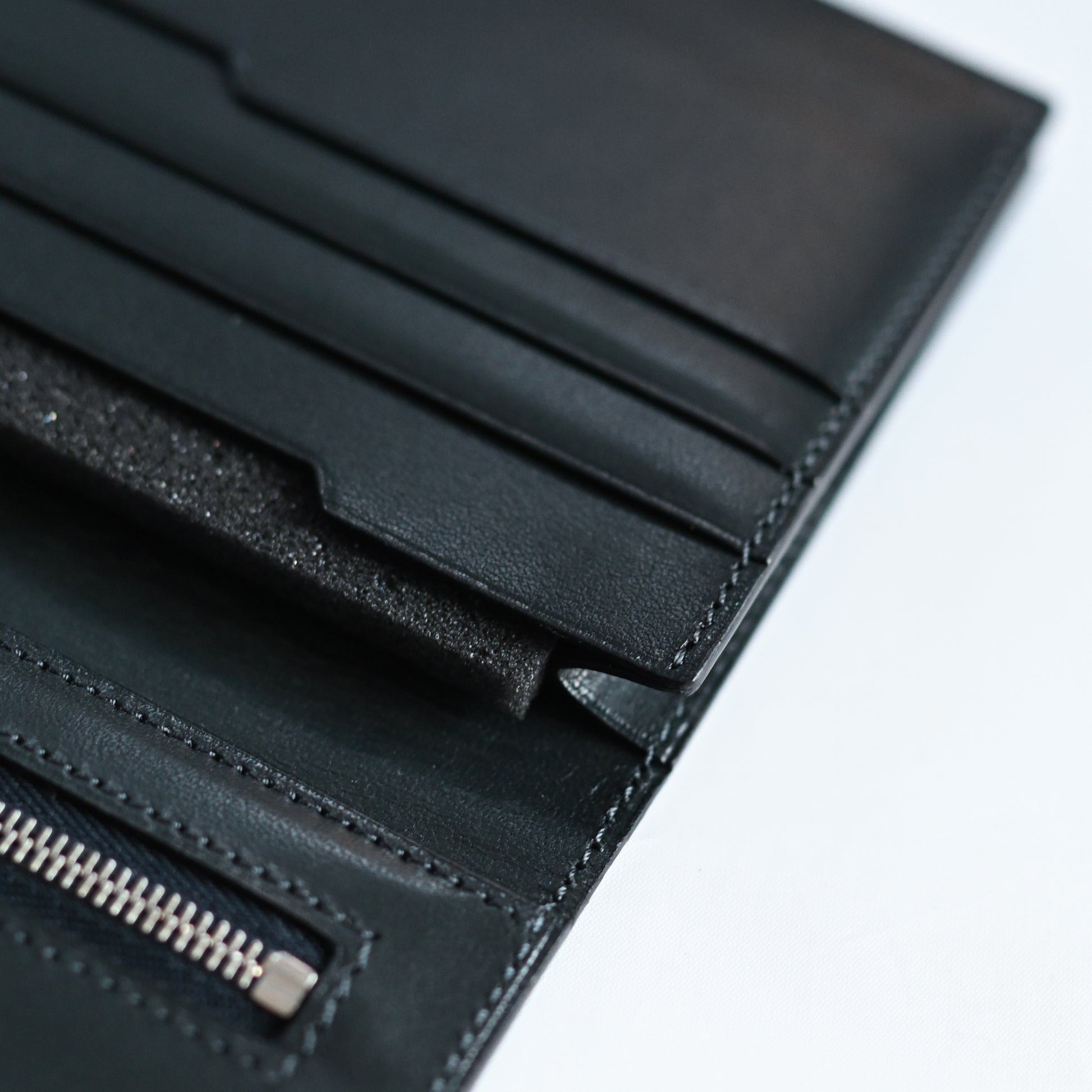 限りなく薄く、鋭く磨き上げられたコバ処理。緻密で精巧なステッチ。そして一つ一つ手作業で磨き上げられる金具。数多くの手仕事が完璧な美しさを実現しています。