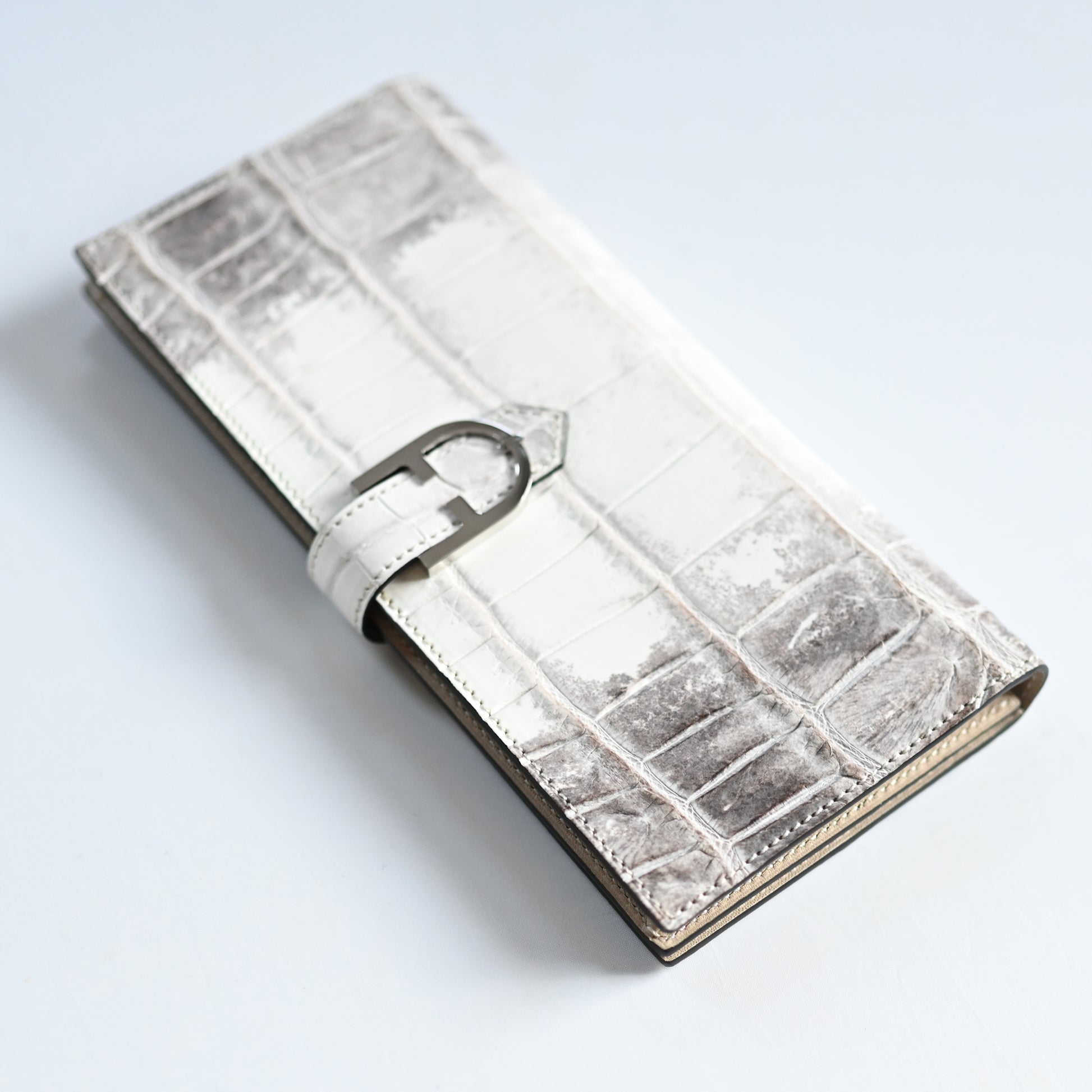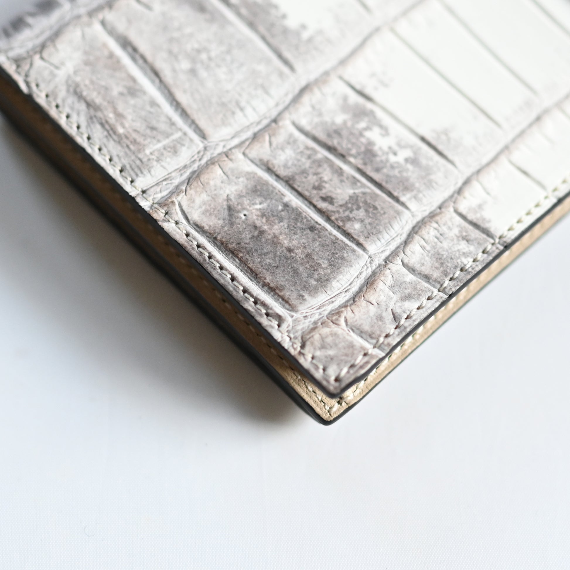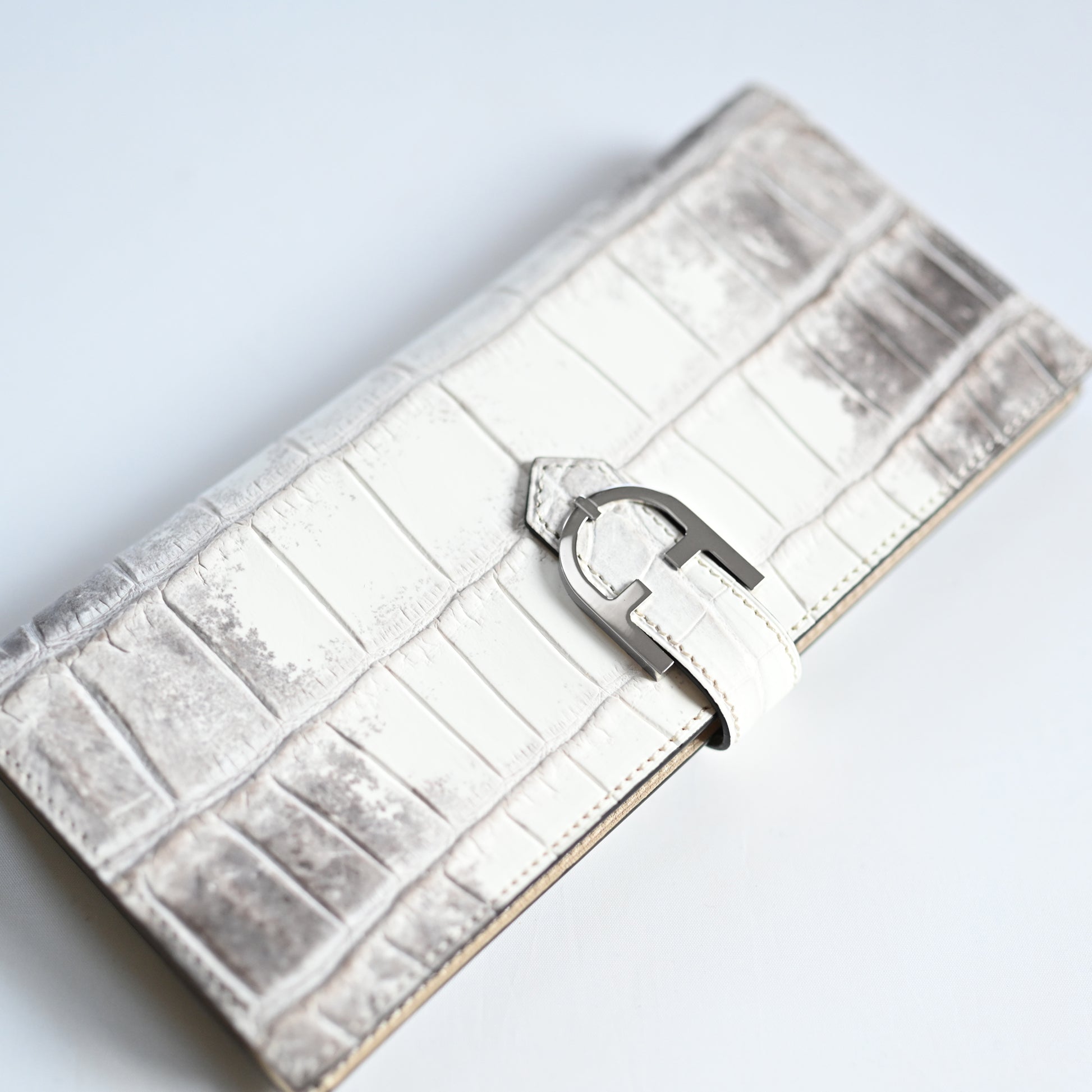 美しいヒマラヤ山脈の雪景色を思わせる、ヒマラヤクロコダイルを使用。滑らかな手触りと芸術的な色合いで、世界で最も希少で高価な素材とされています。