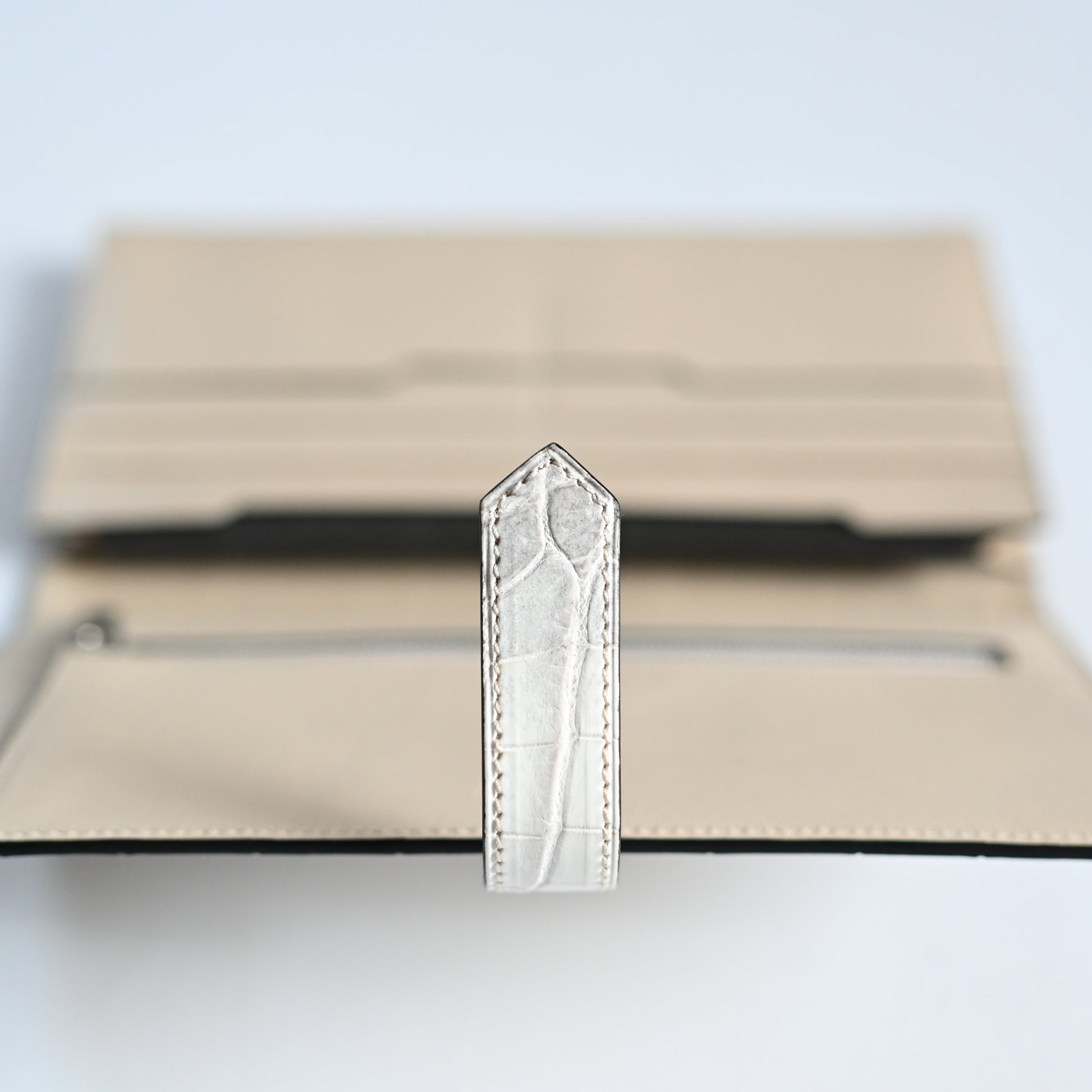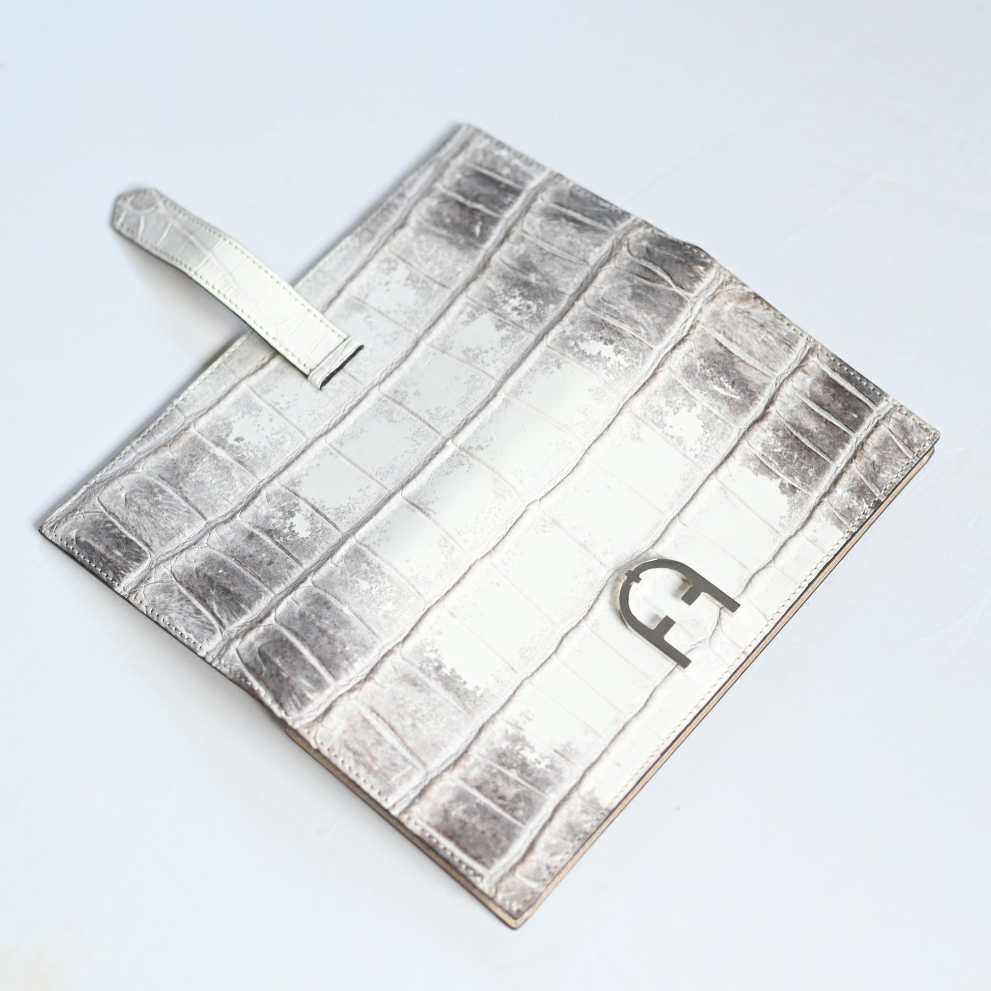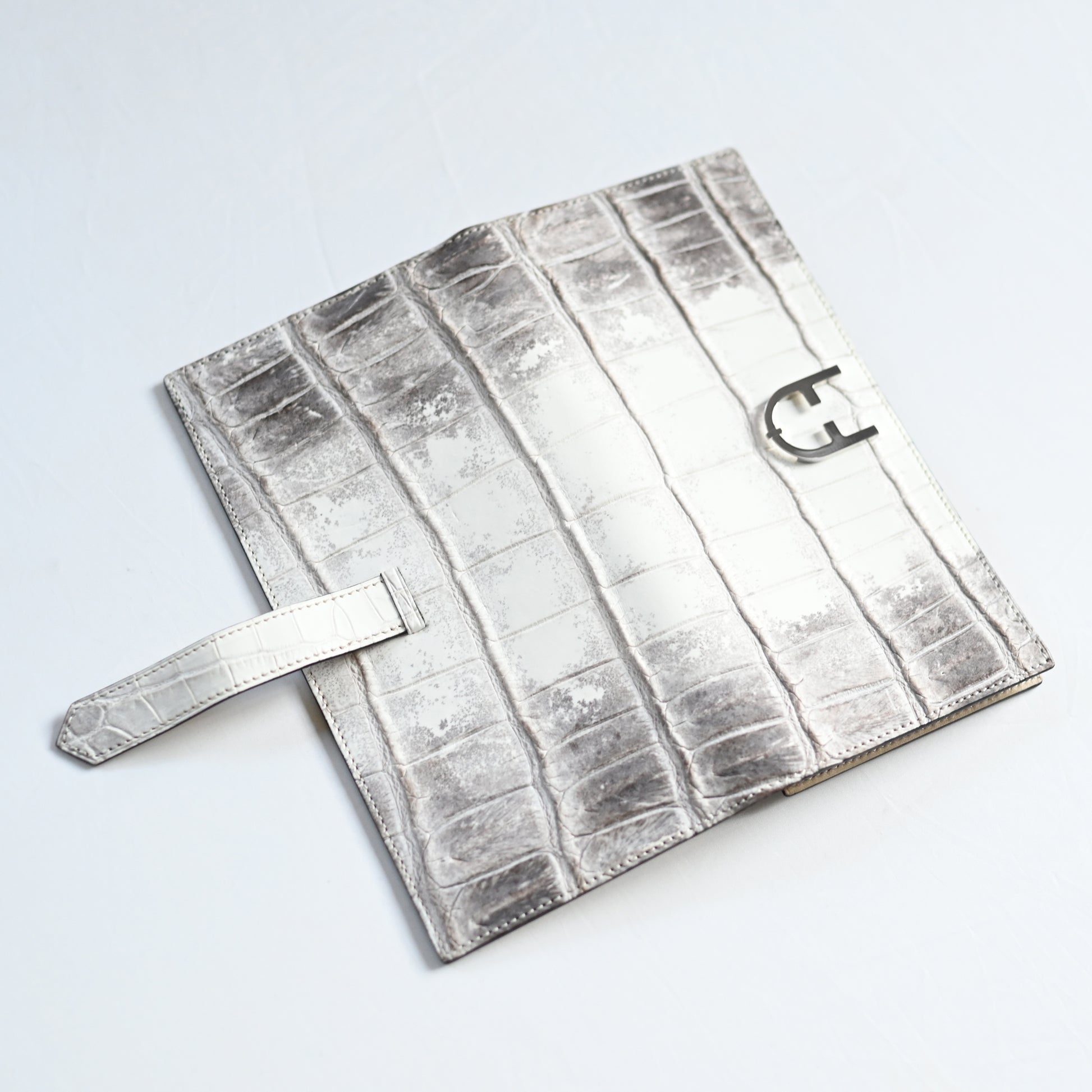 美しいヒマラヤ山脈の雪景色を思わせる、ヒマラヤクロコダイルを使用。滑らかな手触りと芸術的な色合いで、世界で最も希少で高価な素材とされています。